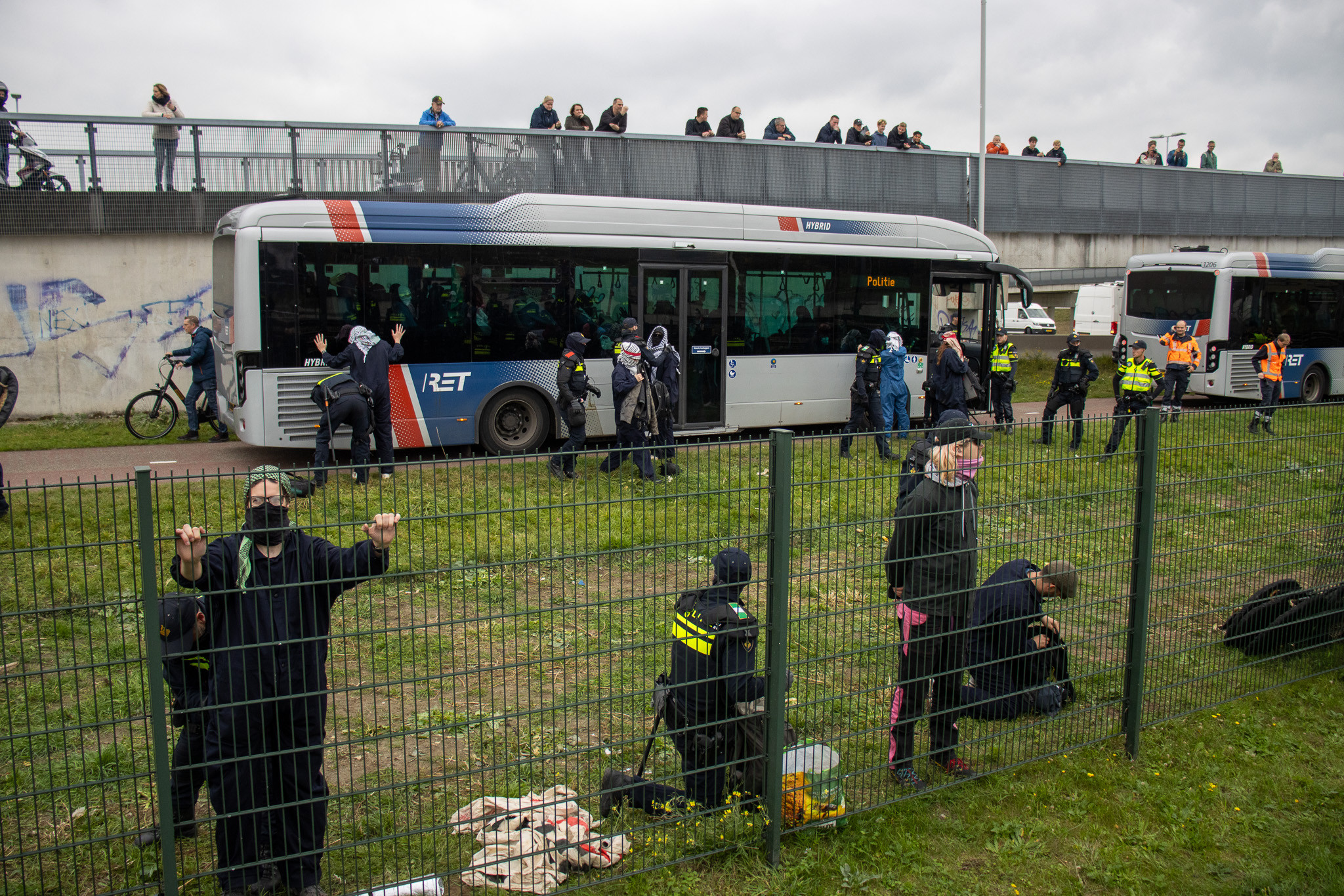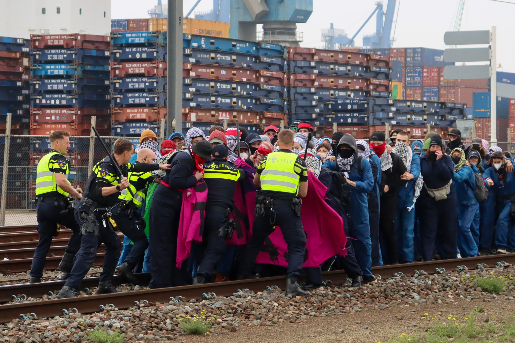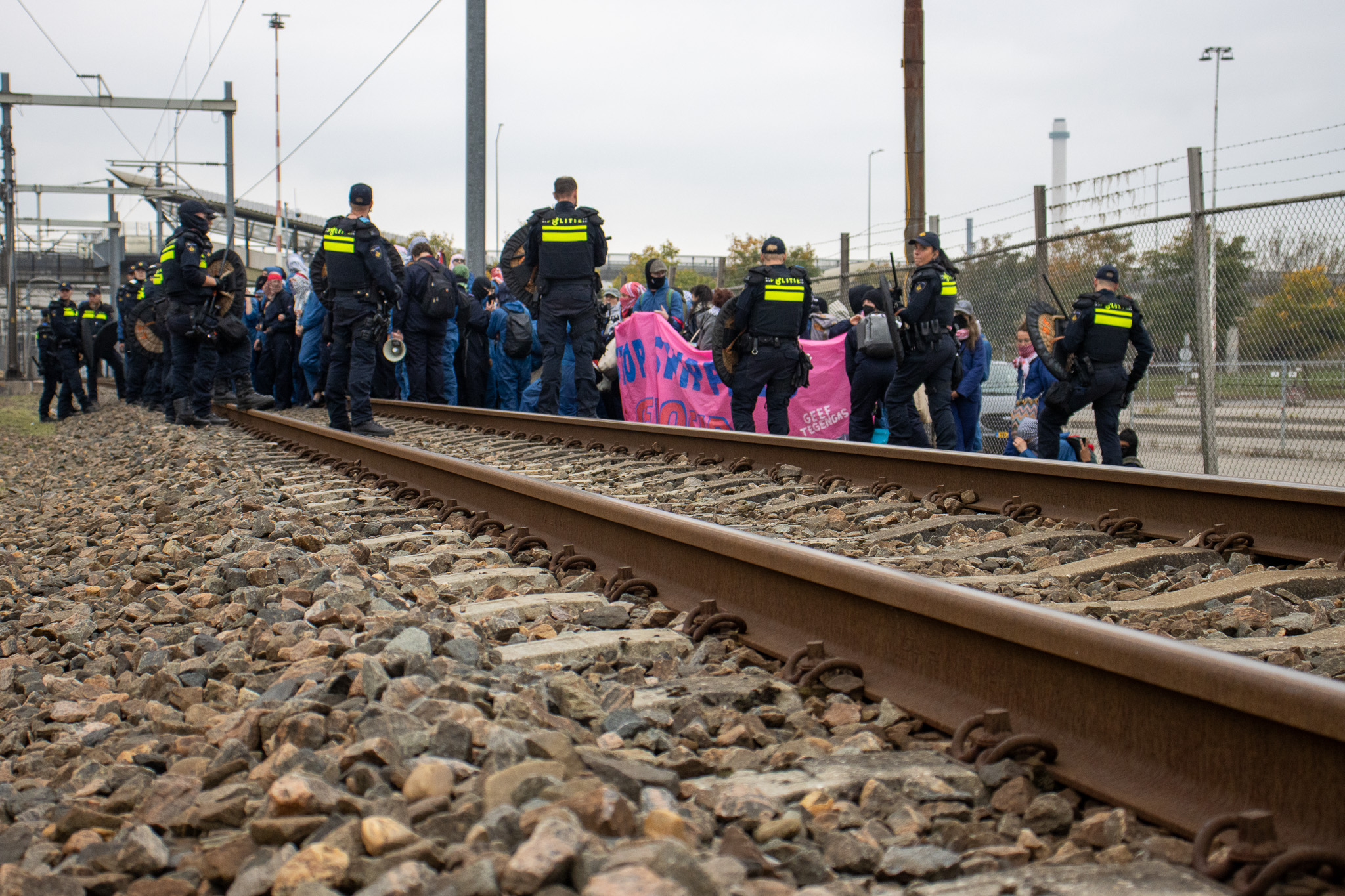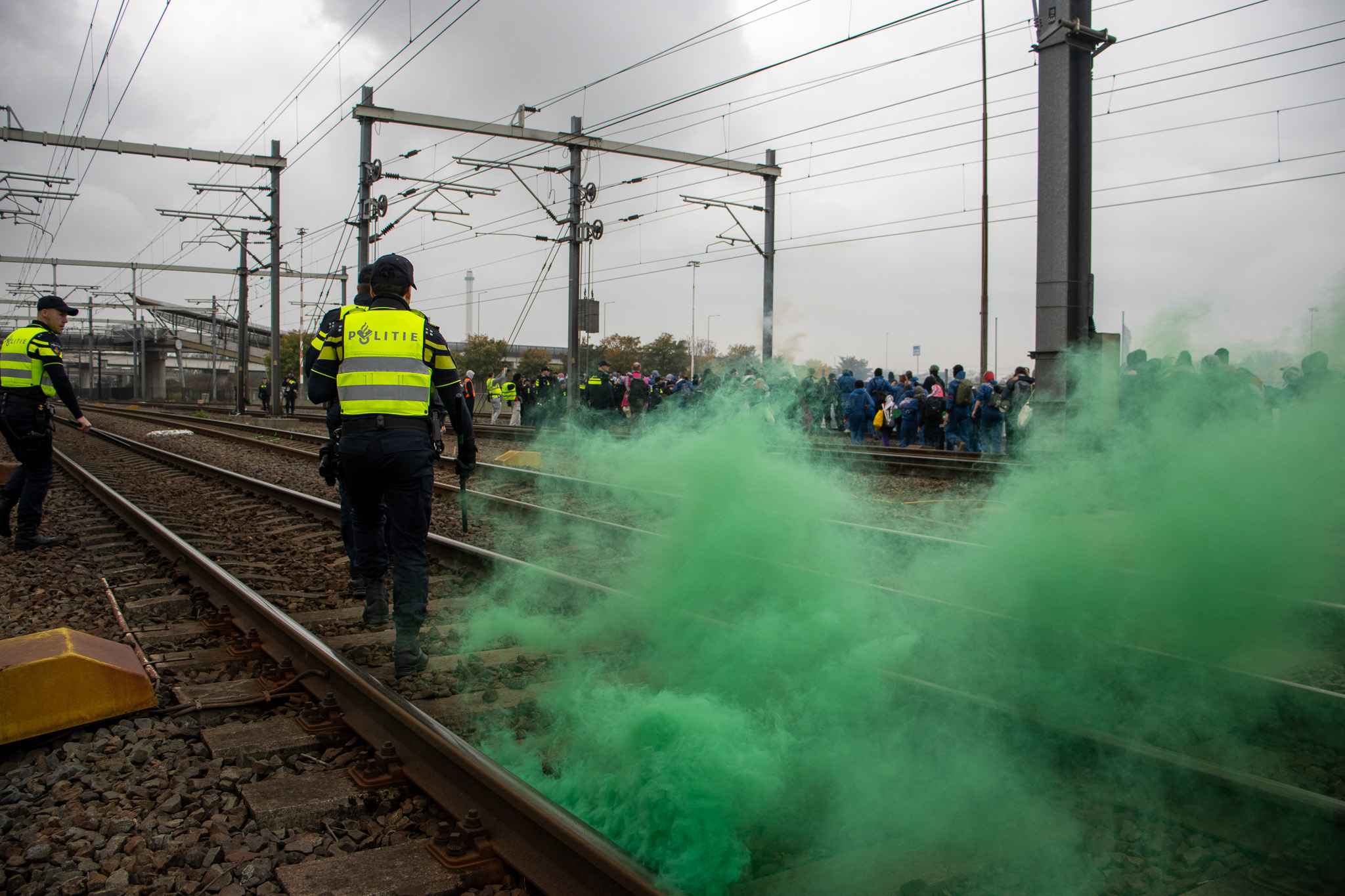 De politie heeft zaterdag 11 oktober ruim 300 actievoerders aangehouden bij een demonstraties op spoorlijnen bij de Rotterdamse haven. Er werden vernielingen aangericht en een agent raakte gewond. De demonstranten waren rond 15.00 uur allemaal van het spoor verwijderd.