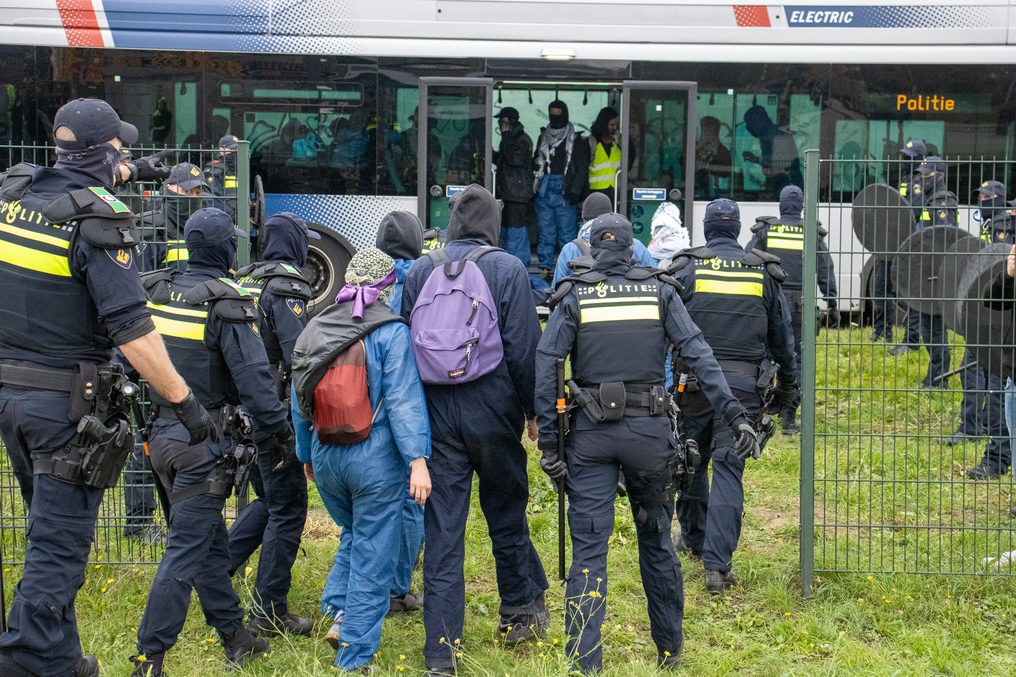 Vervolgens heeft de politie de demonstranten gewaarschuwd en meermaals gevorderd van het spoor af te gaan. Hen is gevraagd op een andere plek hun demonstratie voort te zetten of naar huis te gaan. Alle demonstranten die daar geen gehoor aan hebben gegeven, zijn van het spoor gehaald en aangehouden. Zij zijn met bussen naar een andere locatie gebracht. Daar zijn ze voorgeleid en heengezonden. Zowel aan het spoor als in de bussen zijn vernielingen aangericht. Eén agent raakte gewond door een klap in het gelaat door een actievoerder. Deze agent is naar het ziekenhuis gebracht. Een andere agent werd gebeten en een derde geslagen, maar beiden konden hun werk voortzetten.